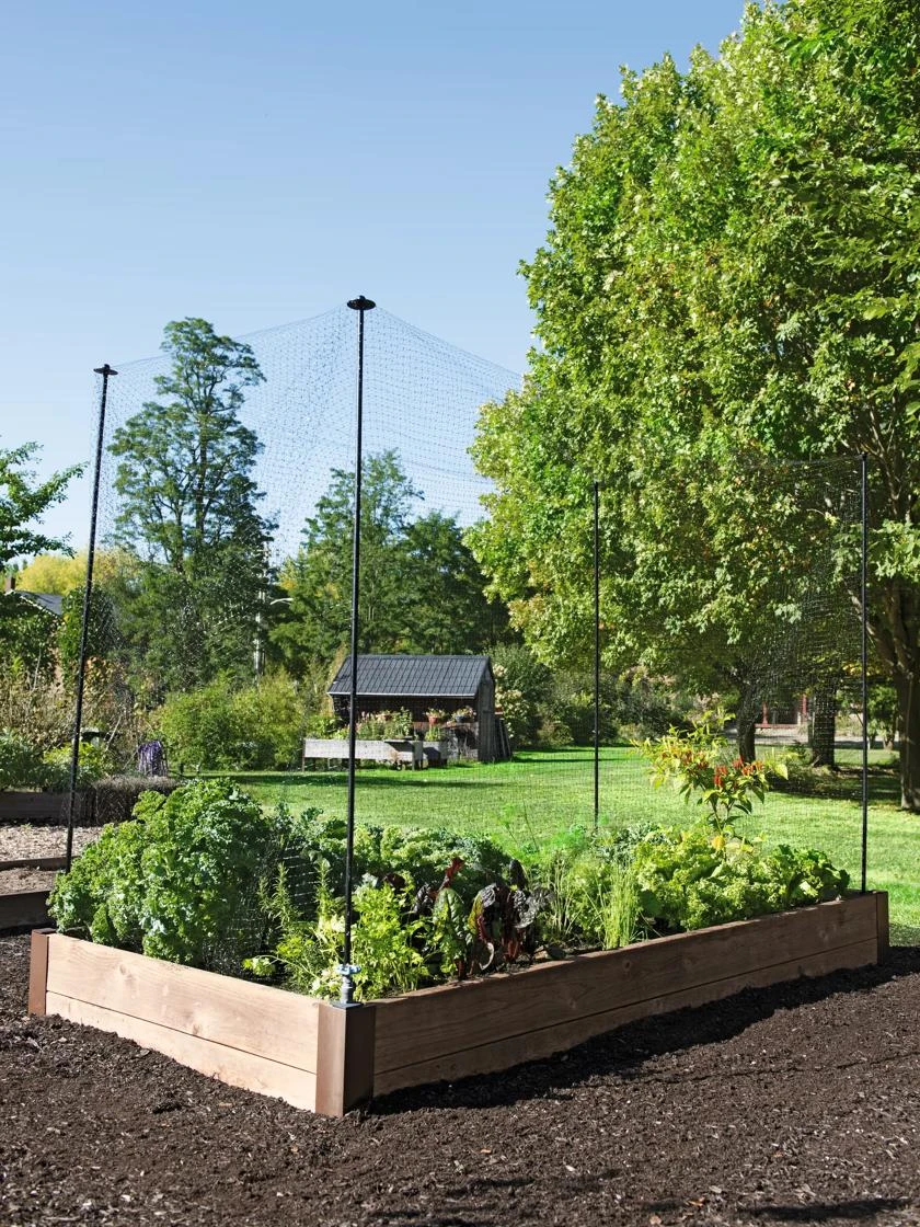 - Tall stakes let you suspend netting over plants