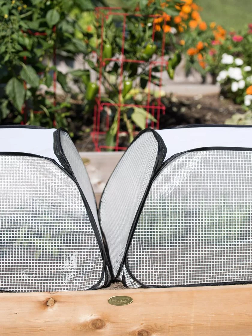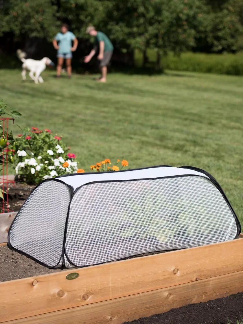Garden row covers protect transplants from cold temperatures and chilly winds, so you can set plants out in the garden weeks earlier in spring. Youāll be amazed at how much faster plants grow ā which means an earlier harvest! The top is made from mesh to allow warm air to escape, preventing overheating, and it also lets water in. Made from durable, reinforced greenhouse fabric. Sets up in seconds; flattens for easy off-season storage. Loops at the base let you anchor it to the ground with Earth Staples, sold separately.