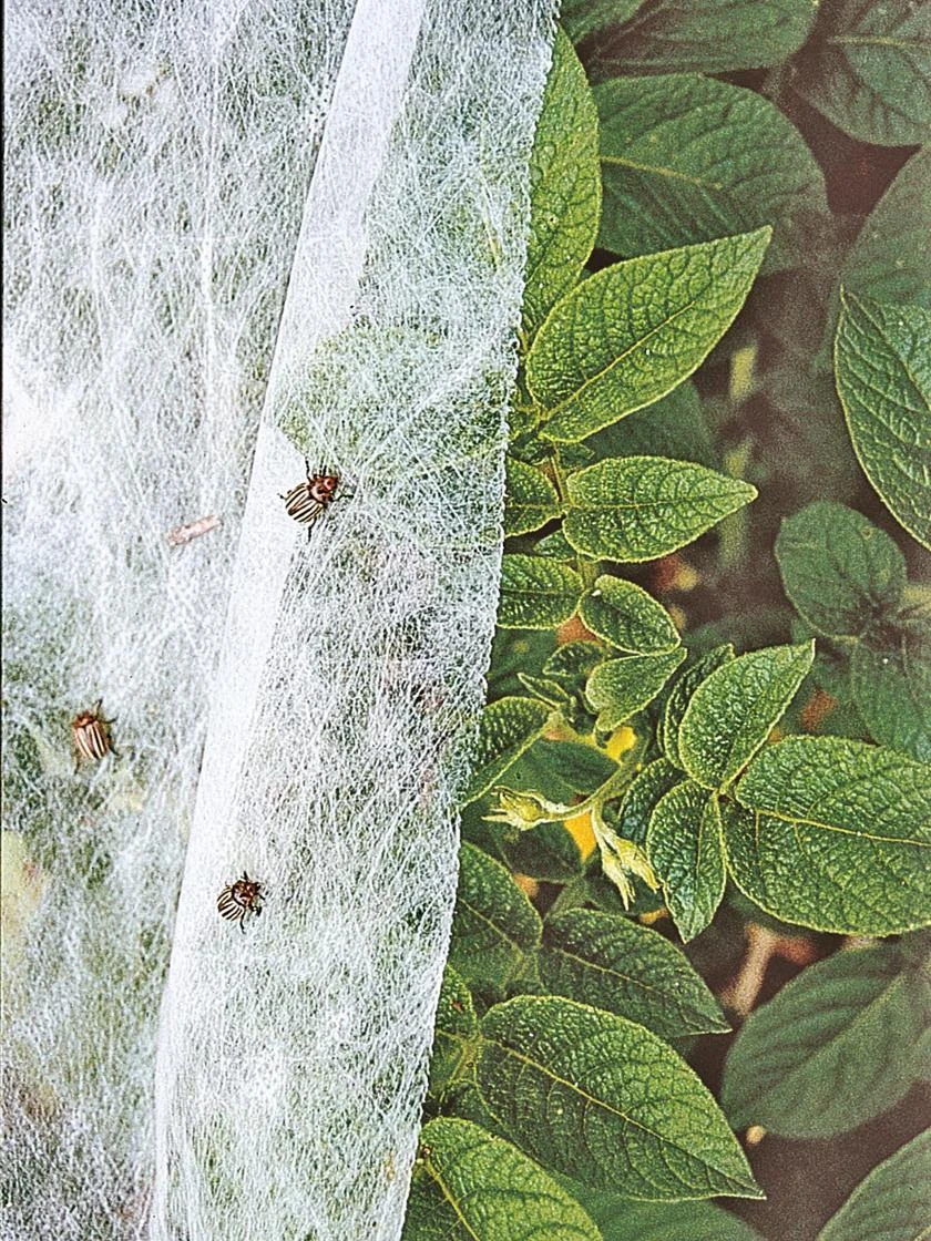 Ideal for summertime pest control, this garden cover effectively screens out Japanese beetles, potato beetles, cabbage worms, leaf miners, carrot flies and most vine borers. It transmits 97.6% of the light to your plants without allowing heat build-up, and it provides cold protection down to 41° F, to extend your growing season.
