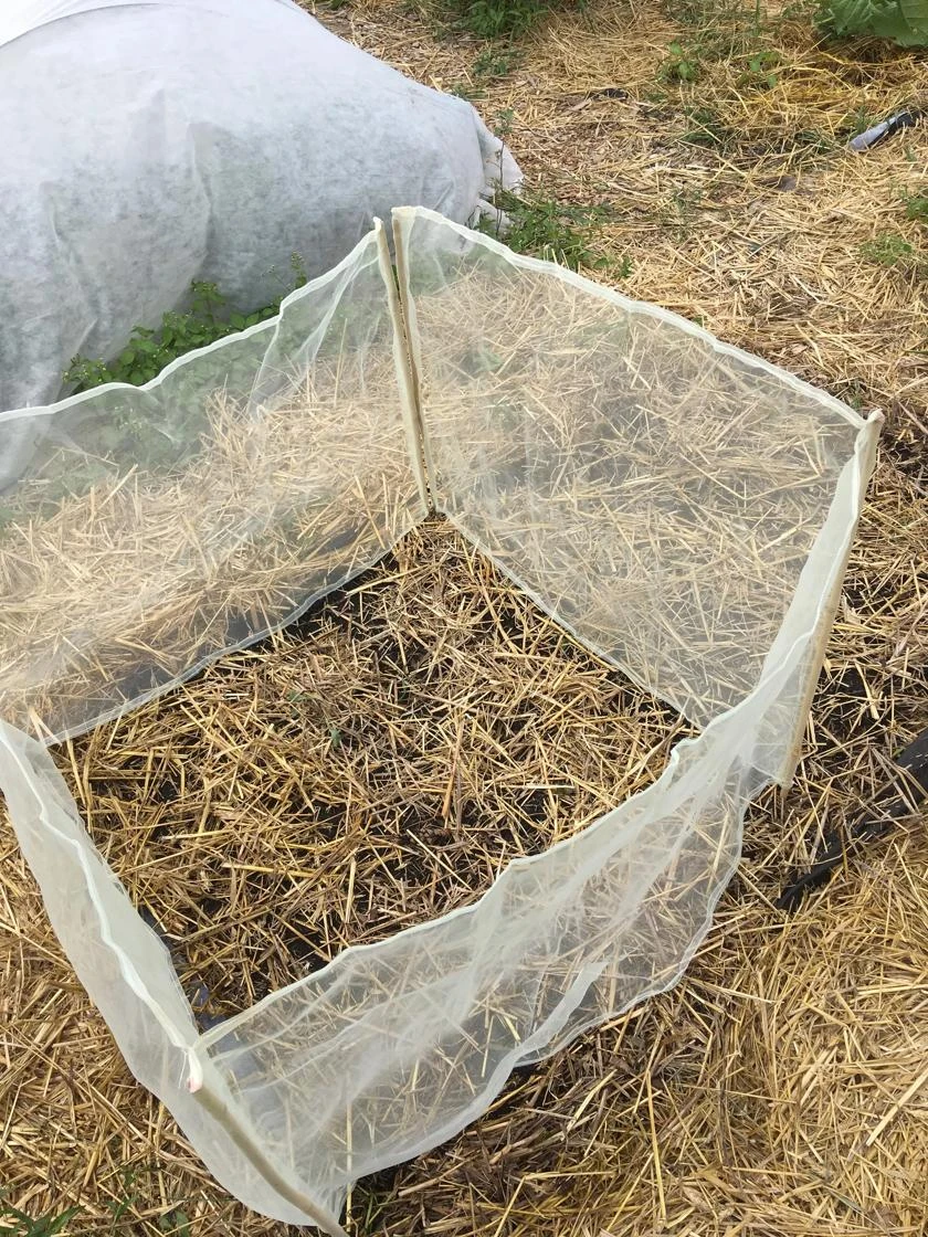 A sudden kick of wind can decimate a young crop in minutes. Or maybe your garden is in such a consistently windy area that you’ve struggled to do much gardening at all. This simple wind barrier sets up easily, and gives plants much needed protection without excess shade. Mesh fabric installs quickly on bamboo stakes — makes a decent barrier against carrot flies and similar pesky bugs too!
